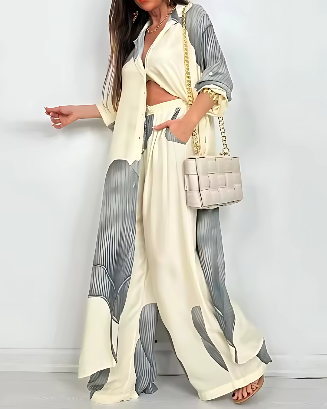 As peças são fluidas e elegantes, permitindo compor outros looks combinando a calça ou camisa com outras peças.