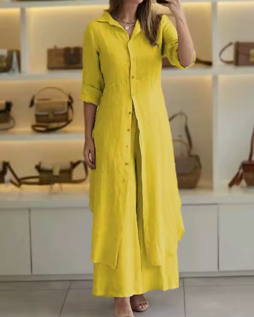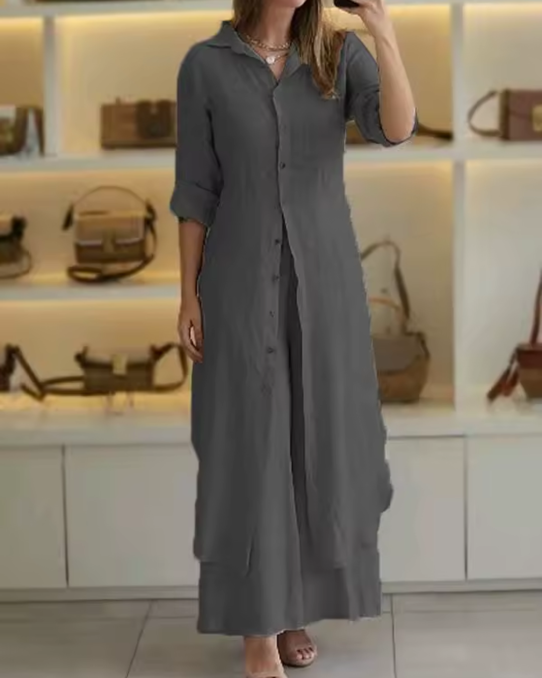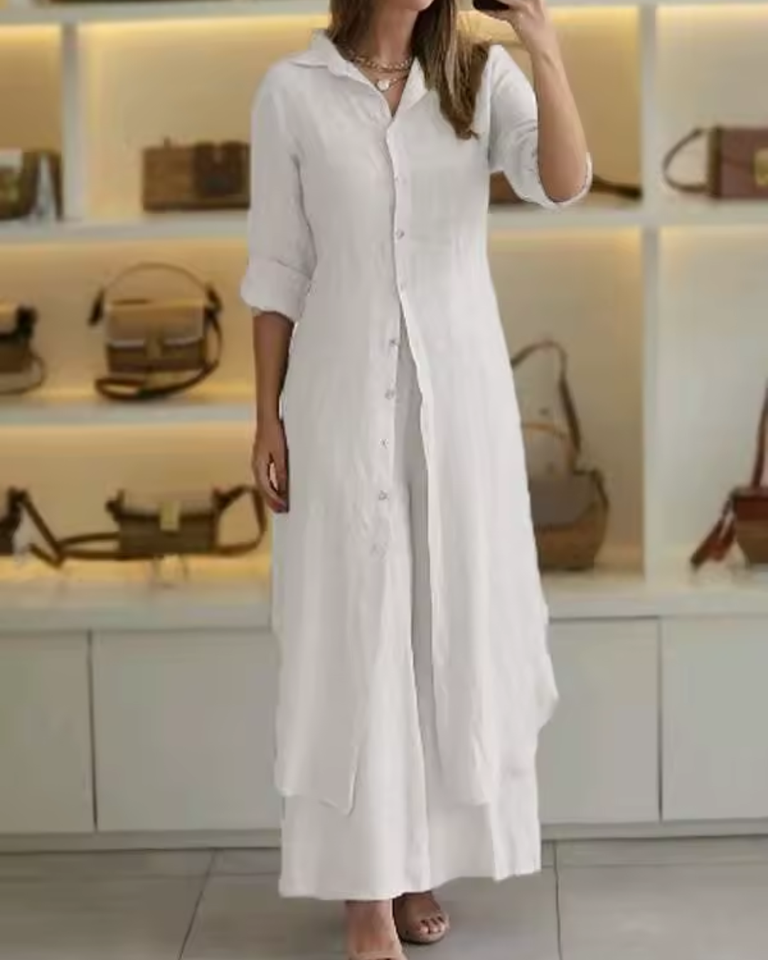 As peças são fluidas e elegantes, permitindo compor outros looks combinando a calça ou camisa com outras peças.