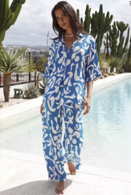 As peças são fluidas e elegantes, permitindo compor outros looks combinando a calça ou camisa com outras peças.