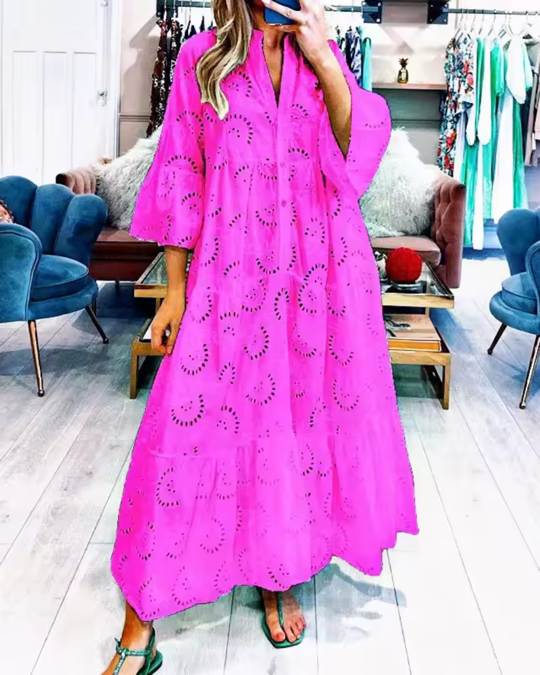 • Modelo: Vestido Longo com Bordado Esther elegante para a primavera/verão. Lindo, versátil e valoriza seu corpo sem marcar!