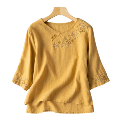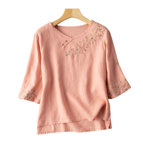 • Material: Poliéster/ Linho - Gola em V - Bordado