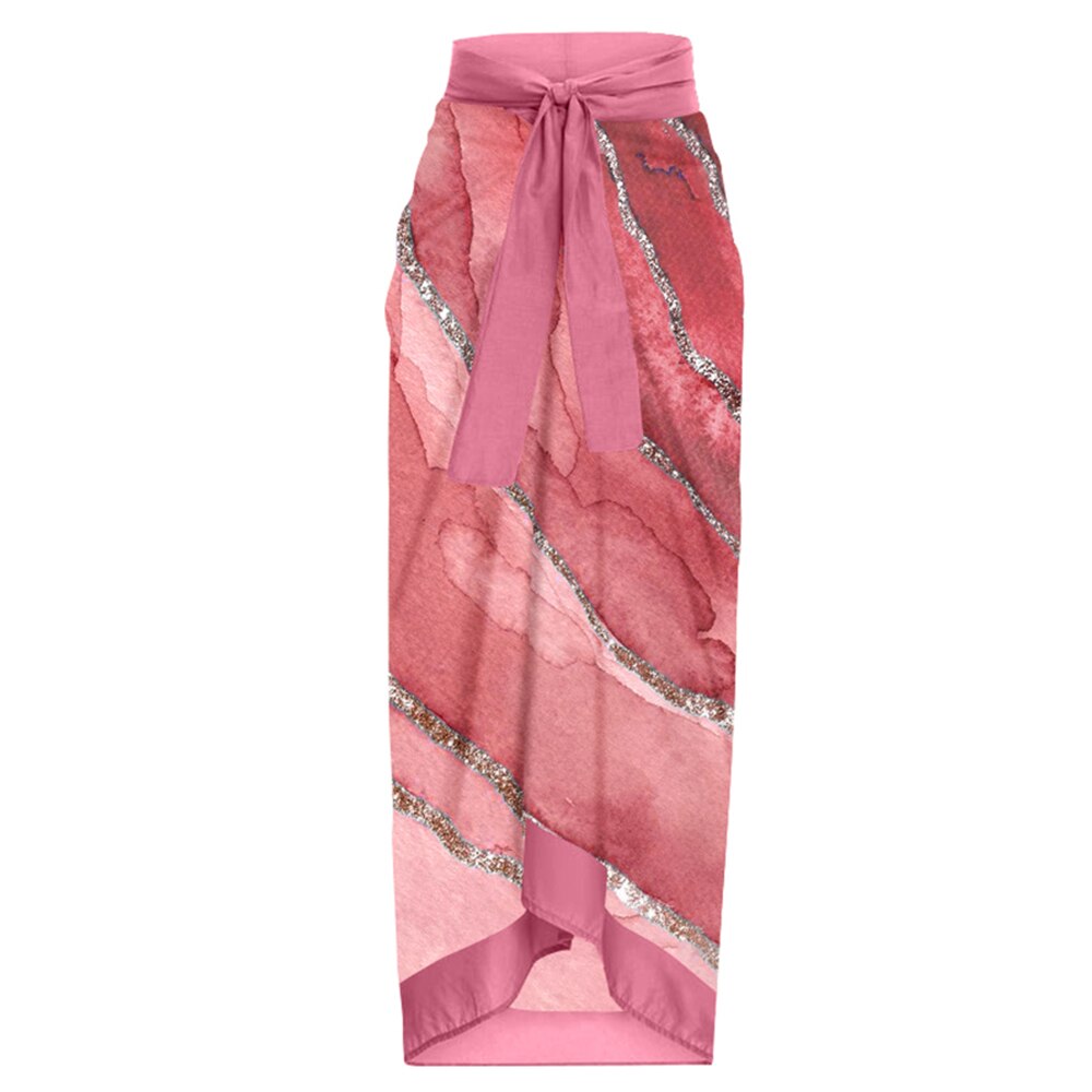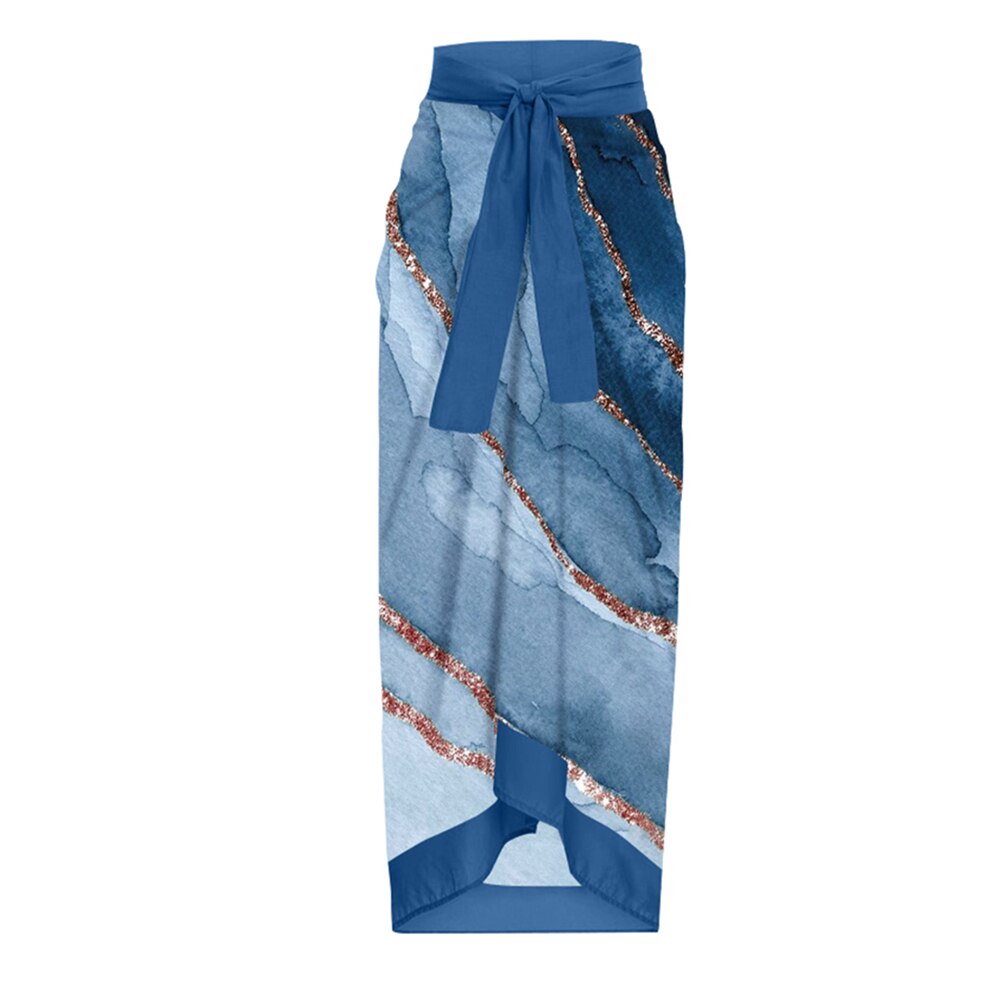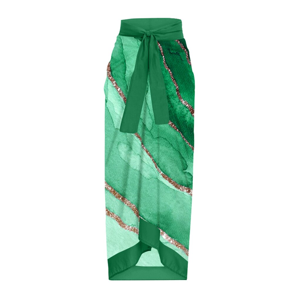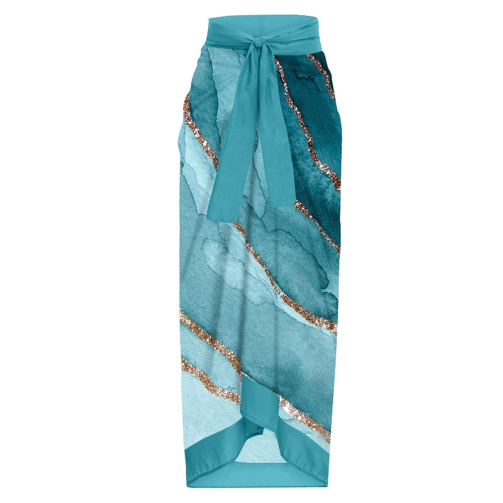 As saídas de praia em formato de saia também são famosas. Esse modelo cobre as pernas, mas os tecidos fluidos dão um efeito lindo em quem usa.