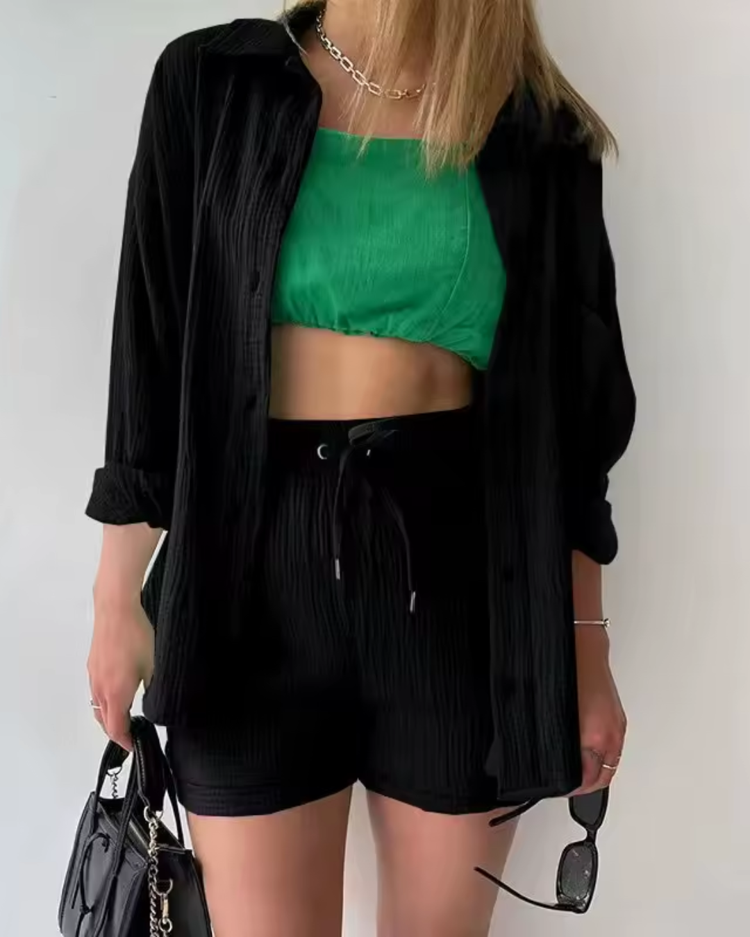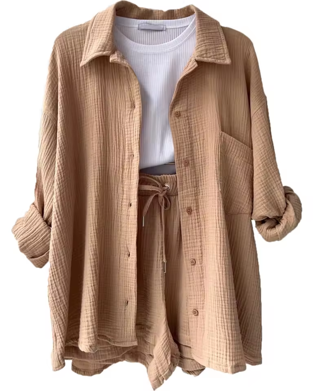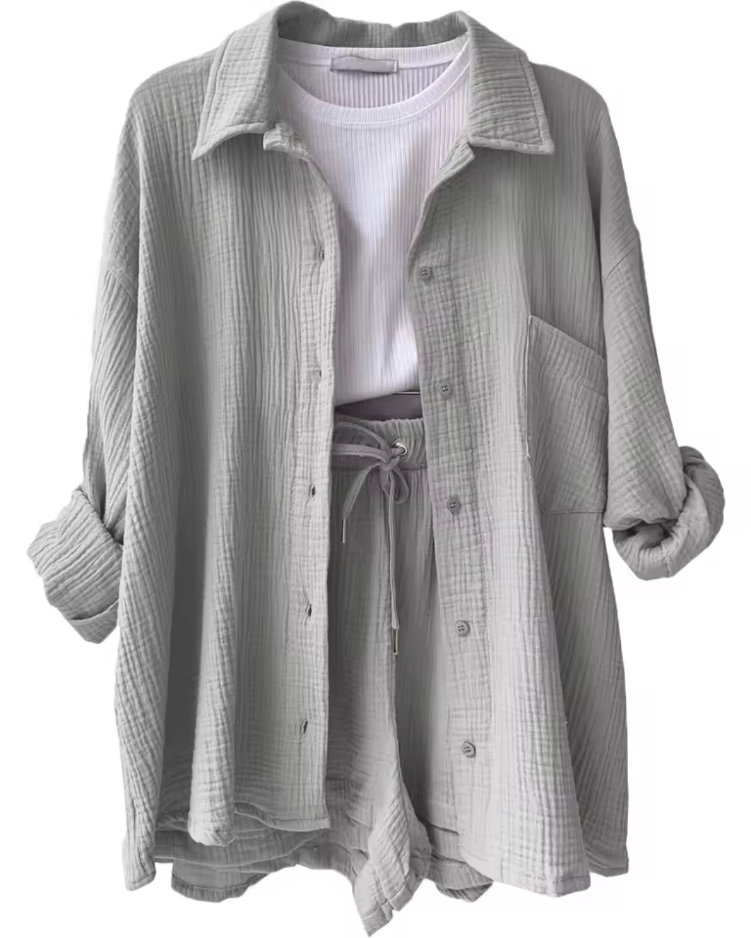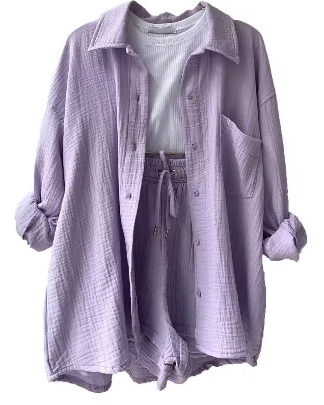 As peças são fluidas e elegantes, permitindo compor outros looks combinando a calça ou camisa com outras peças.