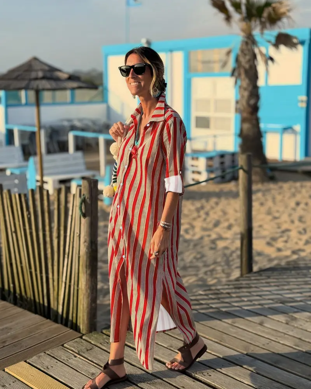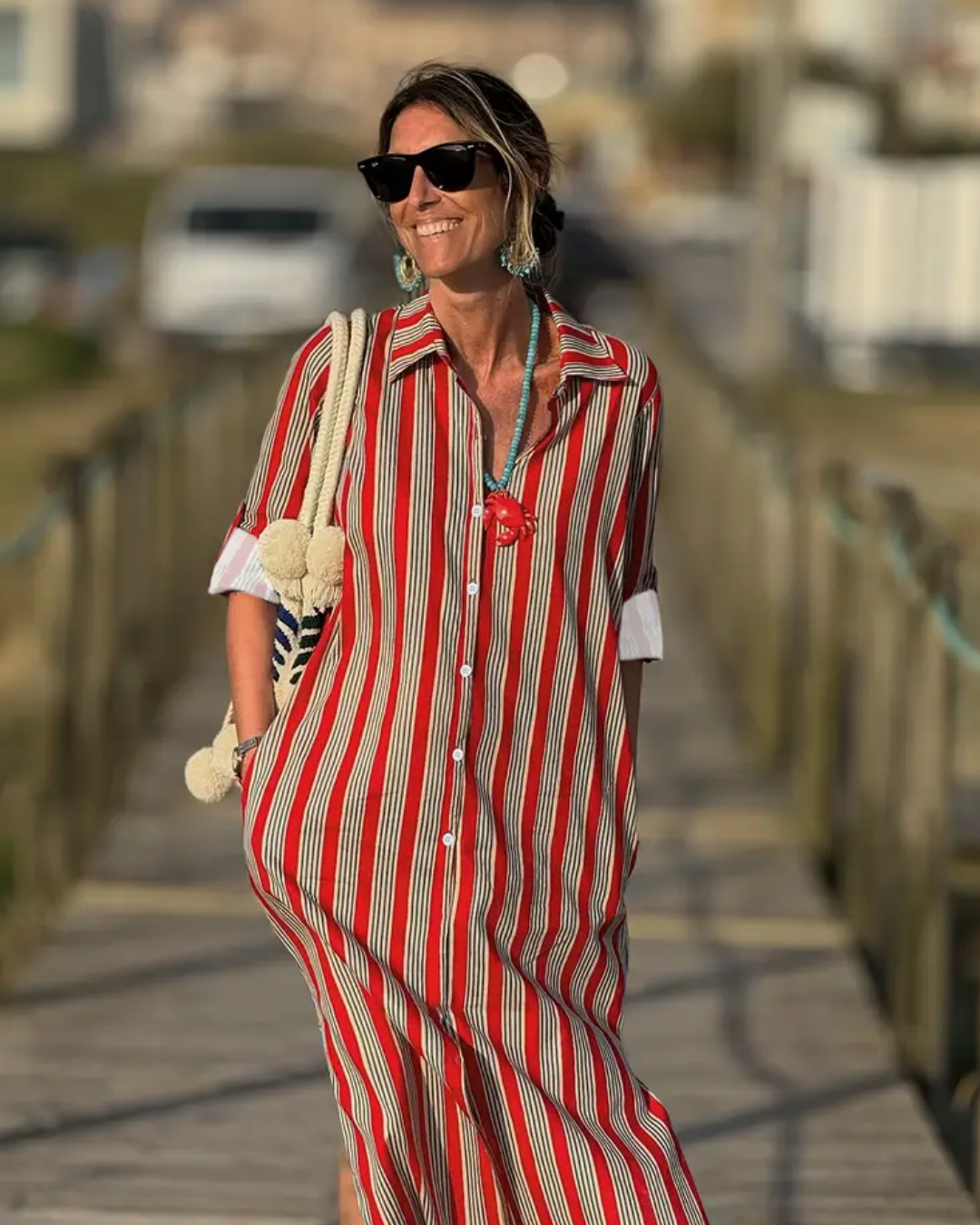 • Peças: Vestido Maxi Chemise Listrada Zoe