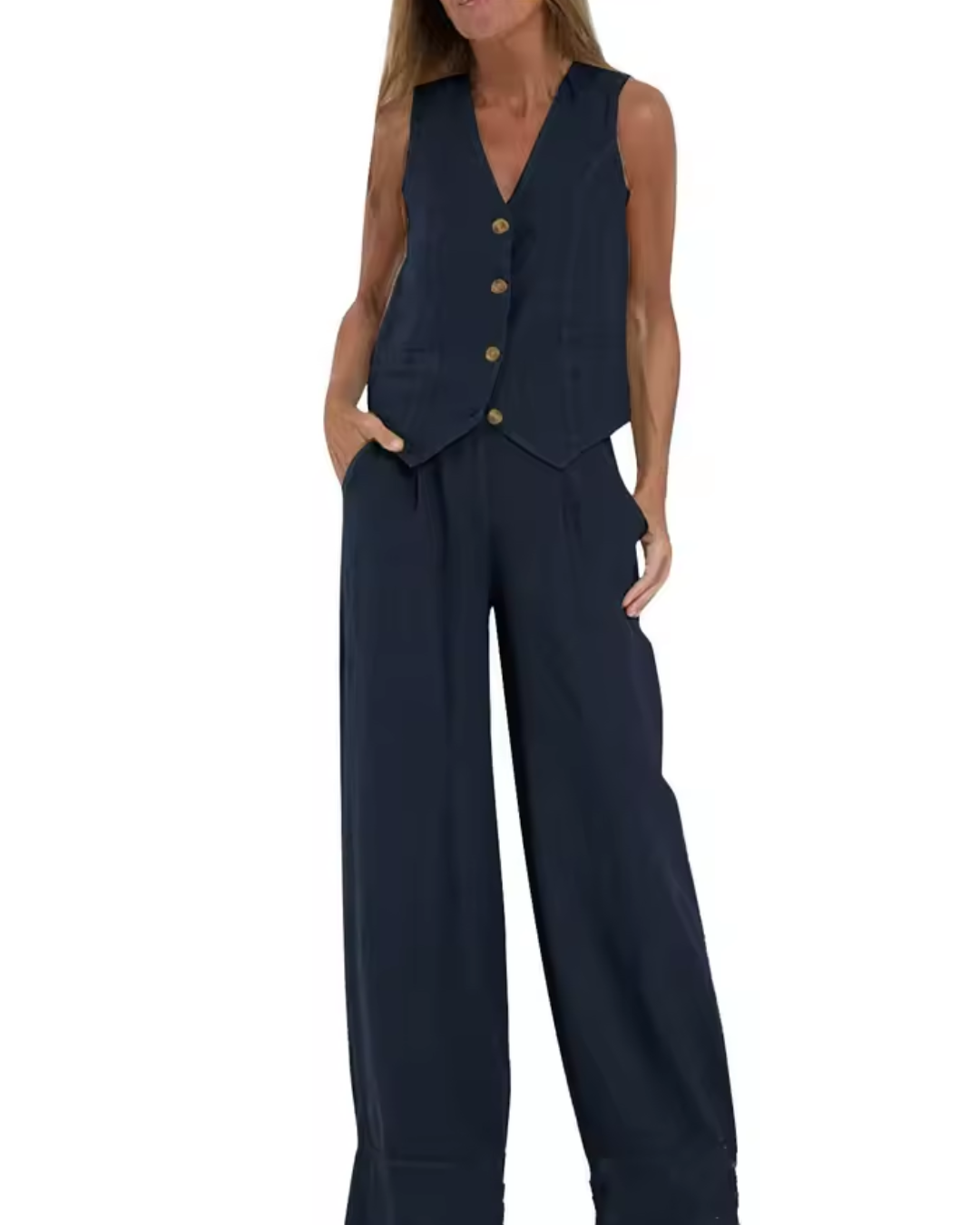 • Modelo: Conjunto Colete Sem Mangas Safira elegante para o verão. Lindo, versátil e valoriza seu corpo sem marcar!