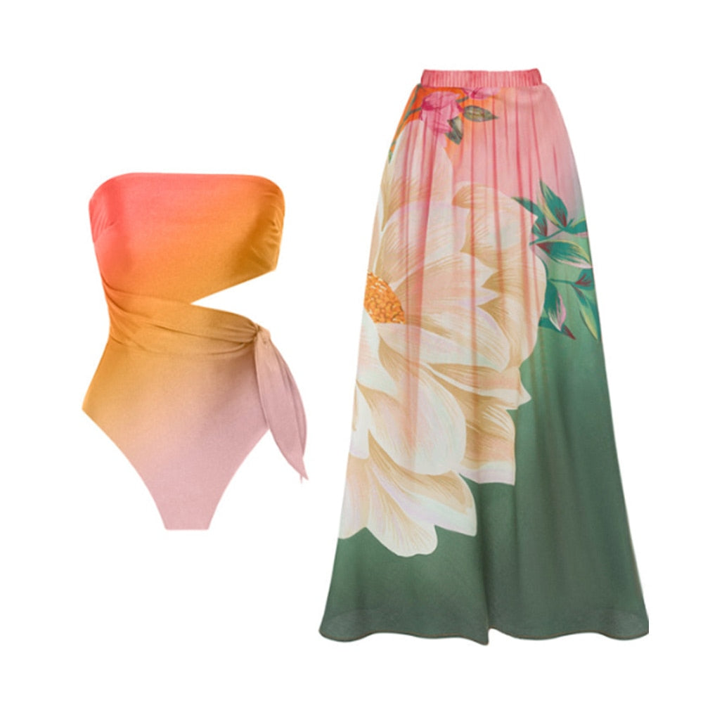 As saídas de praia em formato de saia também são famosas. Esse modelo cobre as pernas, mas os tecidos fluidos dão um efeito lindo em quem usa.