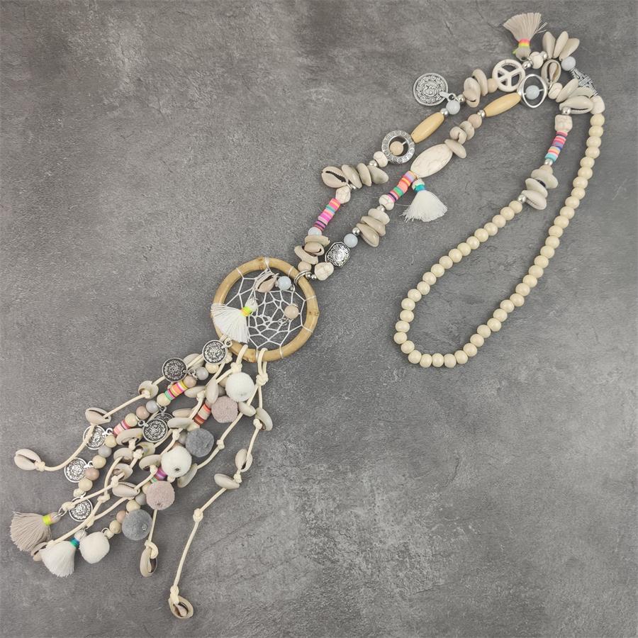 • Material: Pedras naturais, miçangas, madeira, palha, franjas e pompons.