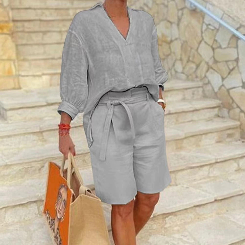 • Detalhes: O Conjunto linho de algodão Clarissa chegou prometendo muita delicadeza e suavidade pra você criar qualquer look maravilhoso, seja ele de dia ou de noite!