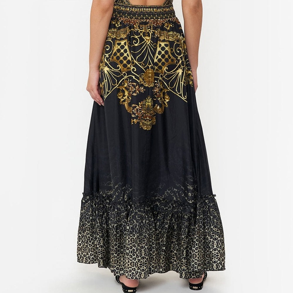 As saídas de praia em formato de saia também são famosas. Esse modelo cobre as pernas, mas os tecidos fluidos dão um efeito lindo em quem usa.