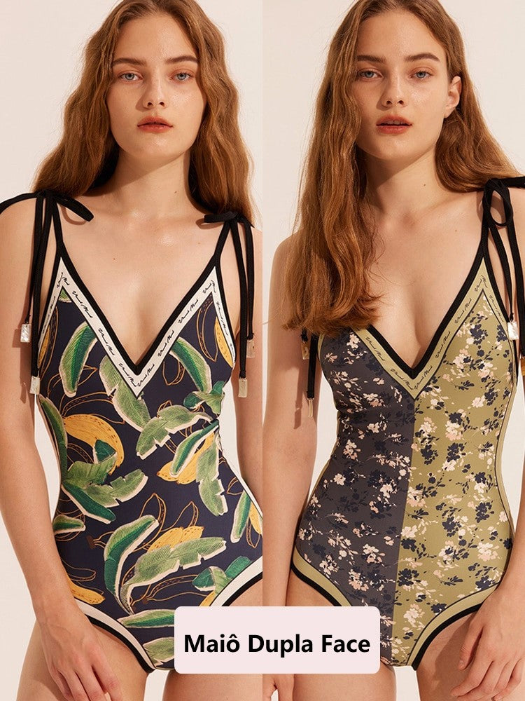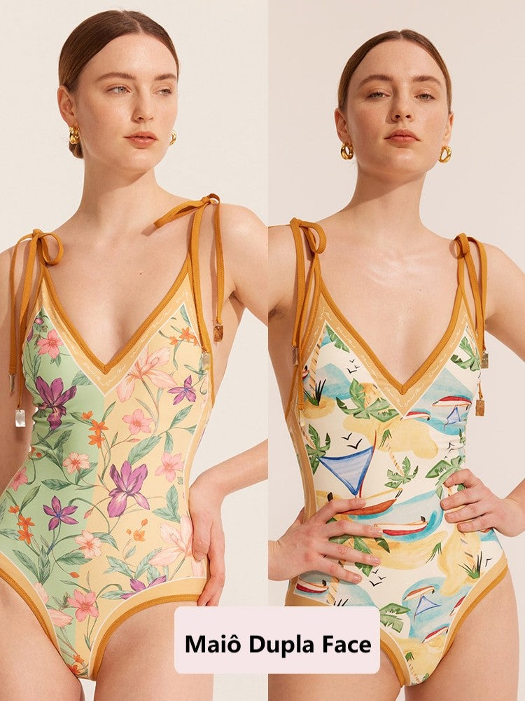 O Maiô é lindo! Possui duas possibilidades de uso por ser dupla face. Estampa clássica e chique com cores neutras para a estação. Perfeito para arrasar nas viagens, passeios e ficar linda nas fotos!