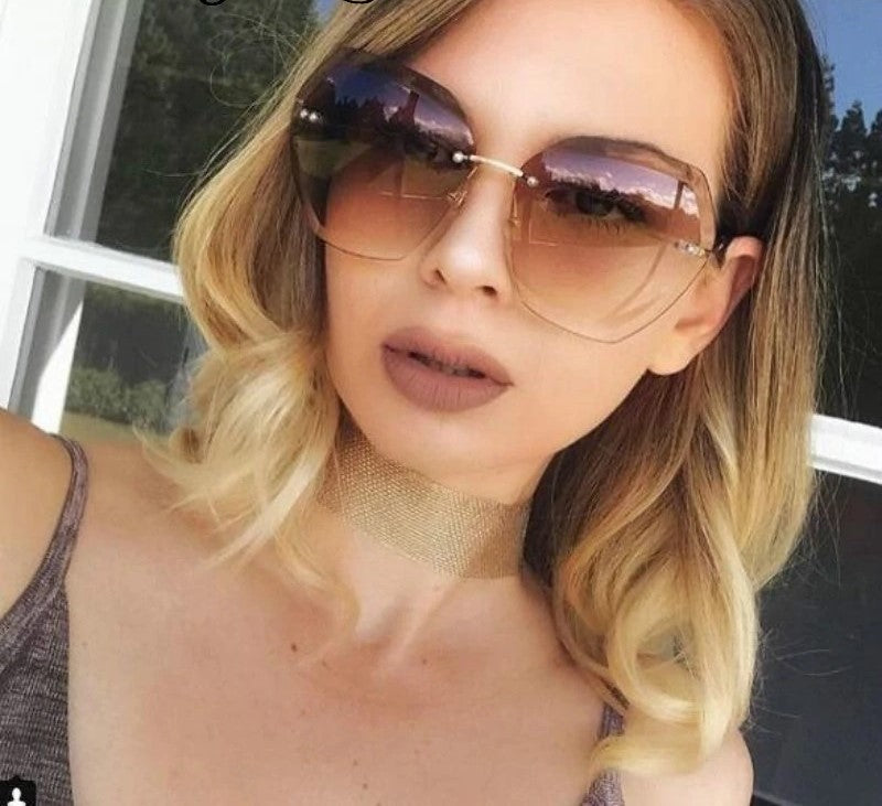 • Modelo: Óculos Hexagonal / Lentes Degradê / Tendência / Sem Aro