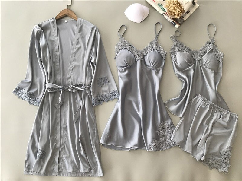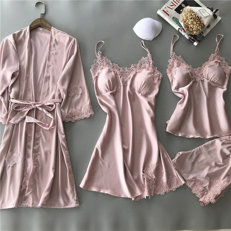 Pijama 4 Peças Manga Rosa » Glamour • Coleção Durma Com Os Anjos
