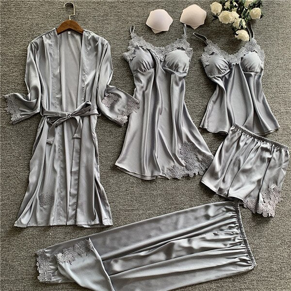 Pijama 5 Peças Manga Rosa » Glamour • Coleção Durma Com Os Anjos