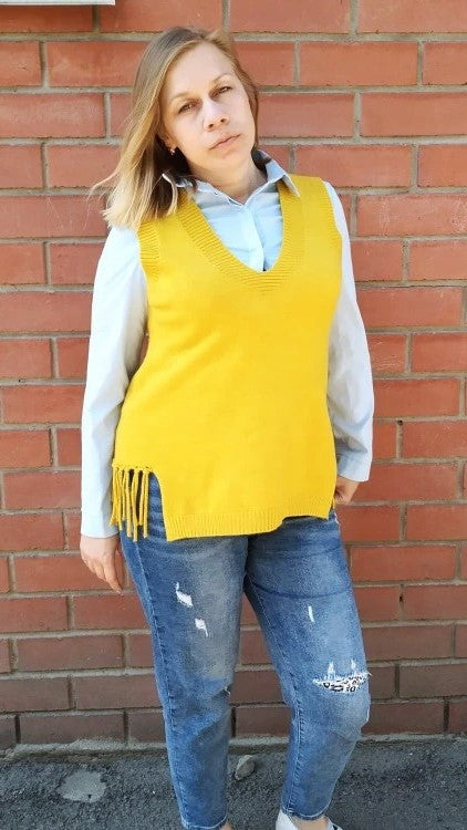 • Detalhes:   Franjas laterais / Pulôver / Colete