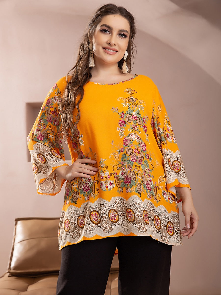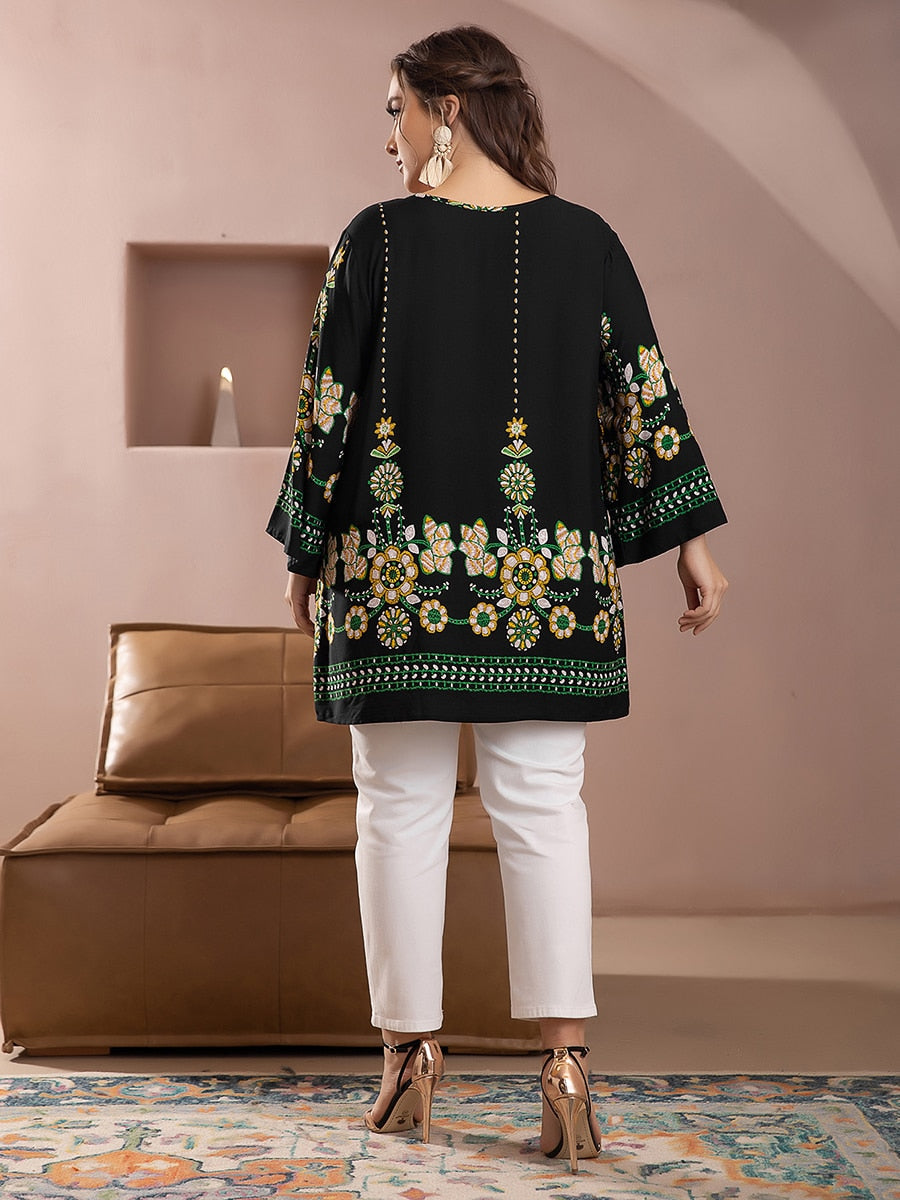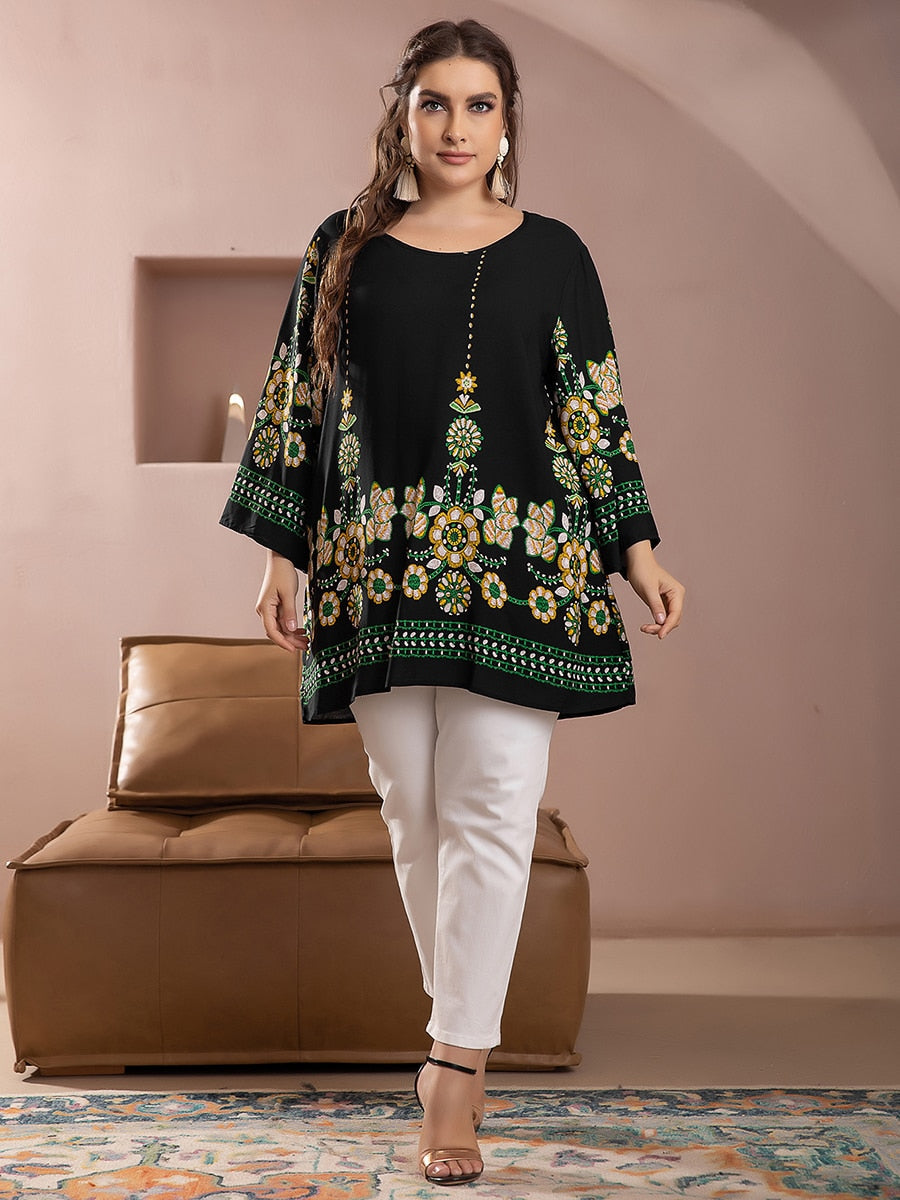 • Modelo Plus Size: Bata ampla, evasê, mangas 3/4. Linda, valoriza seu corpo sem marcar!