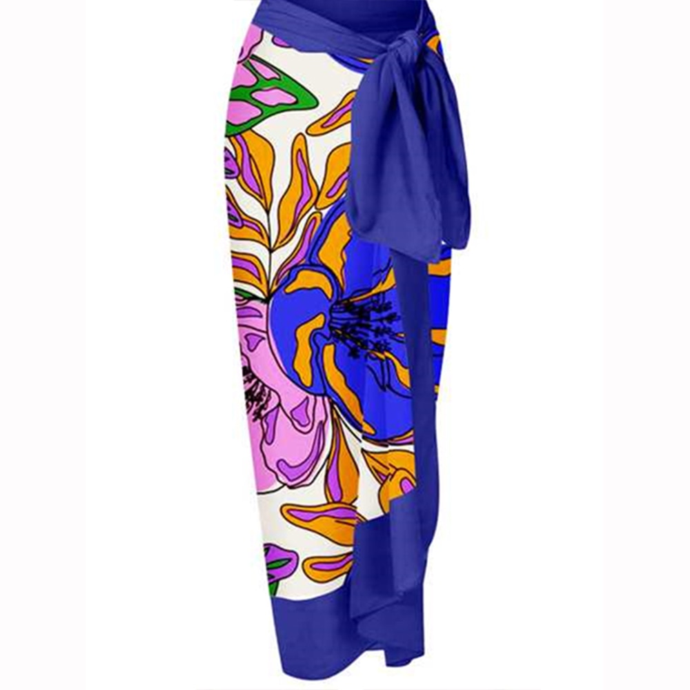 As saídas de praia em formato de saia também são famosas. Esse modelo cobre as pernas, mas os tecidos fluidos dão um efeito lindo em quem usa.