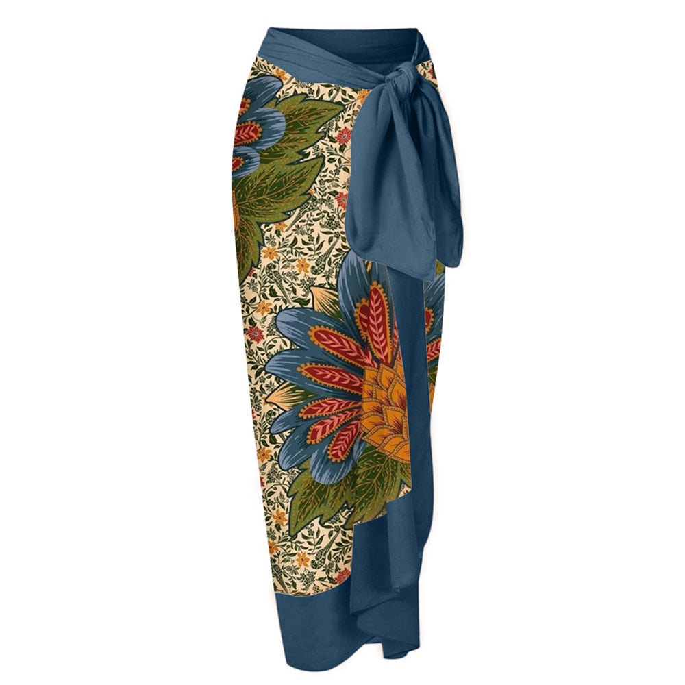 As saídas de praia em formato de saia também são famosas. Esse modelo cobre as pernas, mas os tecidos fluidos dão um efeito lindo em quem usa.