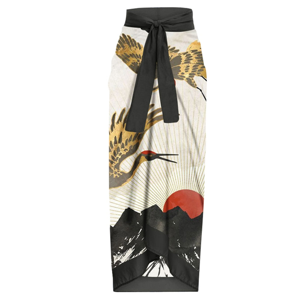 As saídas de praia em formato de saia também são famosas. Esse modelo cobre as pernas, mas os tecidos fluidos dão um efeito lindo em quem usa.
