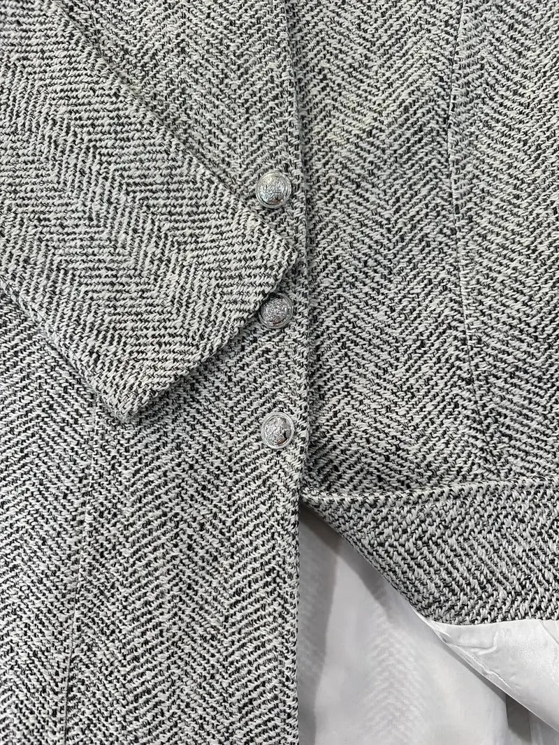 Este casaco de tweed é a escolha perfeita para quem busca sofisticação e praticidade no dia a dia. Com corte regular e silhueta alongada, ele proporciona um caimento impecável em diversos tipos de corpo. O comprimento médio e as mangas longas com fechamento por botão trazem um toque clássico, ideal para compor looks urbanos elegantes e versáteis.