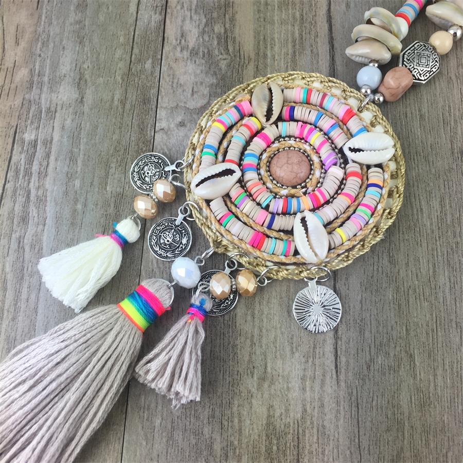 • Material: Pedras naturais, miçangas, madeira, palha, franjas e pompons.